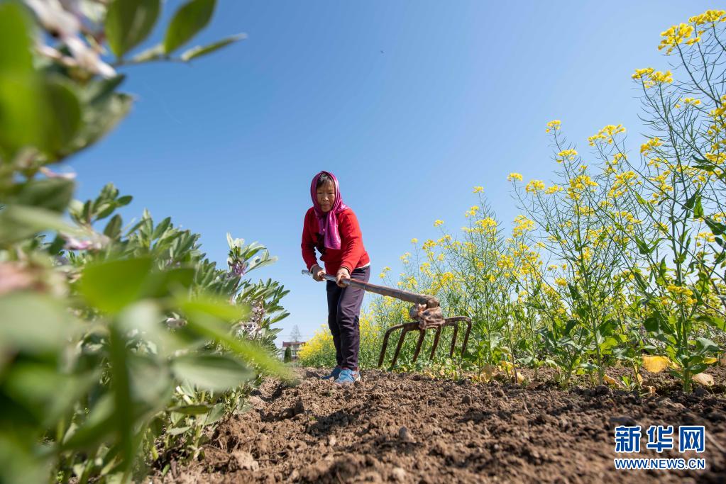 4月5日,在江蘇南通海安市大公鎮(zhèn)群益村,農(nóng)民在田間平整土地,準(zhǔn)備播種大豆。