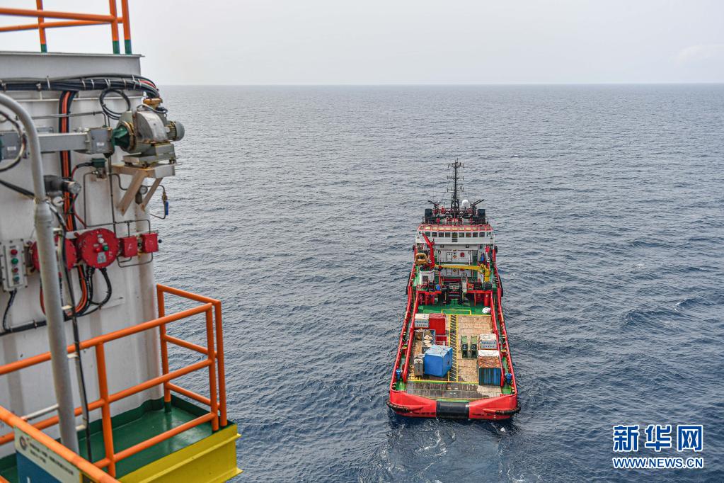 這是4月25日在南海北部海域拍攝的為中國海油樂東15-1氣田運(yùn)送物資的拖船。