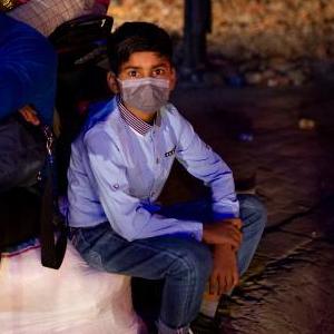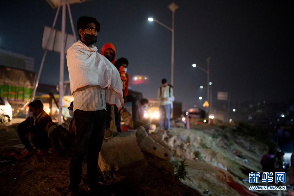 4月28日晚,人們?cè)谀岵礌柺锥技拥聺M都的路邊等車,準(zhǔn)備在封禁措施實(shí)施前離開加德滿都返回家鄉(xiāng)。