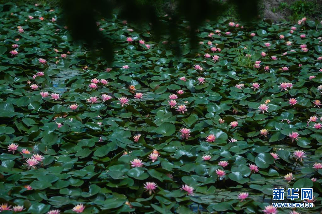 在東林鎮(zhèn)東方村,水田里種植的睡蓮盛開(5月7日攝)。