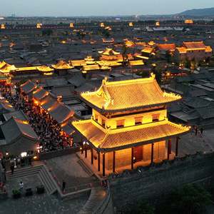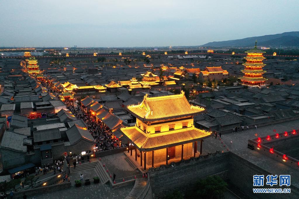夜幕降臨,位于山西省太原市晉源區(qū)的太原古縣城流光溢彩,游人如織。太原古縣城始建于明代,占地面積約0.8平方公里,因其造型像一只飛鳥,也被譽為“鳳凰城”。歷經8年修繕后,太原古縣城于2021年5月重新對外開放。