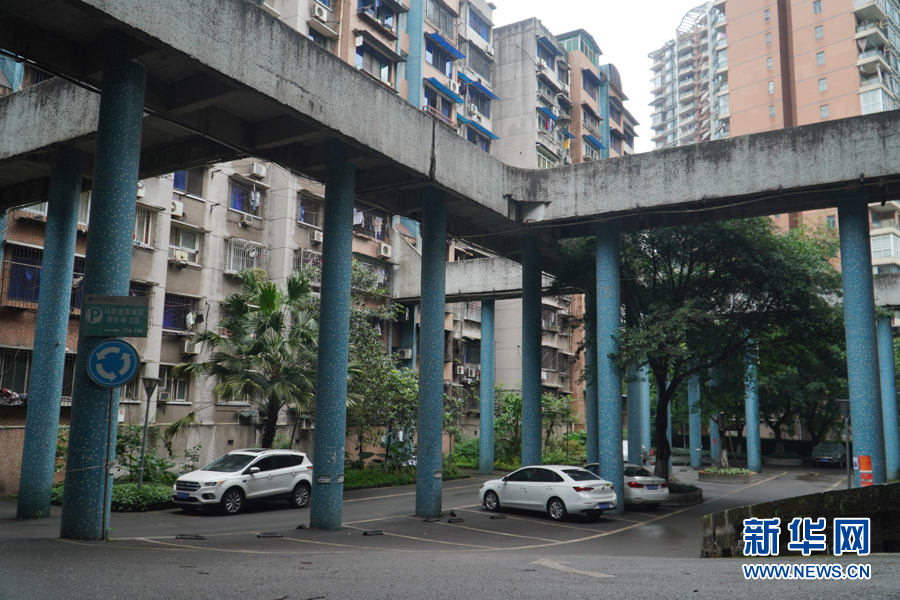 繼輕軌穿樓、高鐵穿樓、“貓頭鷹”立交橋之后,重慶又一建筑走紅網(wǎng)絡(luò)。近日,有網(wǎng)友發(fā)現(xiàn),重慶渝中區(qū)一個老小區(qū)幾棟居民樓的4樓中間,建起了連接各個單元的空中走廊,居民出入猶如空中漫步。新華網(wǎng) 耿駿宇 攝