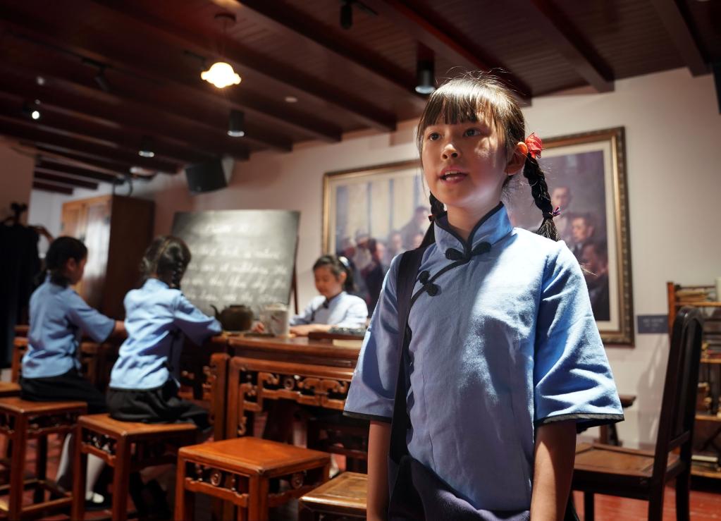 5月31日,全新布展提升后的中共四大紀(jì)念館重新開(kāi)館,首批“小紅花”小小講解員進(jìn)行了專場(chǎng)情景劇的首演。新華社記者 劉穎 攝