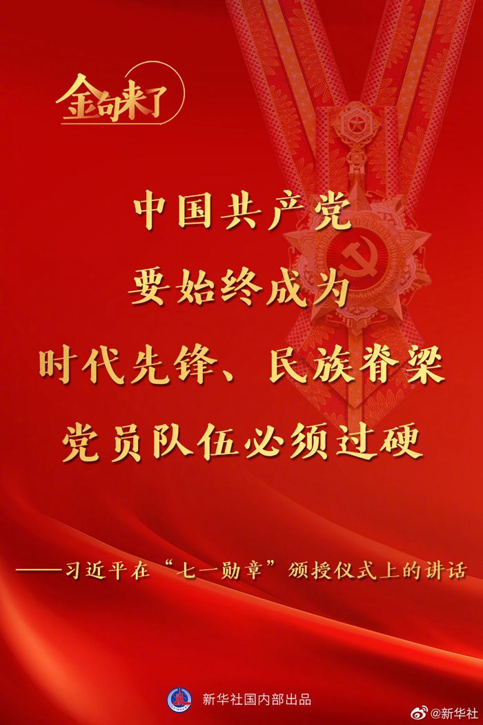 習(xí)近平說,新時代是需要英雄并一定能夠產(chǎn)生英雄的時代。中國共產(chǎn)黨要始終成為時代先鋒、民族脊梁,黨員隊(duì)伍必須過硬。希望受到表彰的同志珍惜榮譽(yù)、發(fā)揚(yáng)成績,爭取更大光榮。各級黨組織要從工作和生活上關(guān)心愛護(hù)功勛黨員,大力宣傳“七一勛章”獲得者的感人事跡和崇高品德,在全黨全社會形成崇尚先進(jìn)、見賢思齊的濃厚氛圍,激勵廣大黨員、干部牢記黨的性質(zhì)宗旨,牢記黨的初心使命,不懈奮斗,永遠(yuǎn)奮斗,在全面建設(shè)社會主義現(xiàn)代化國家新征程上,向著第二個百年奮斗目標(biāo)、向著中華民族偉大復(fù)興的中國夢奮勇前進(jìn)!?
