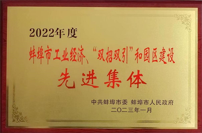 蚌埠市工業(yè)經(jīng)濟(jì)、“雙招雙引”和園區(qū)建設(shè)先進(jìn)集體