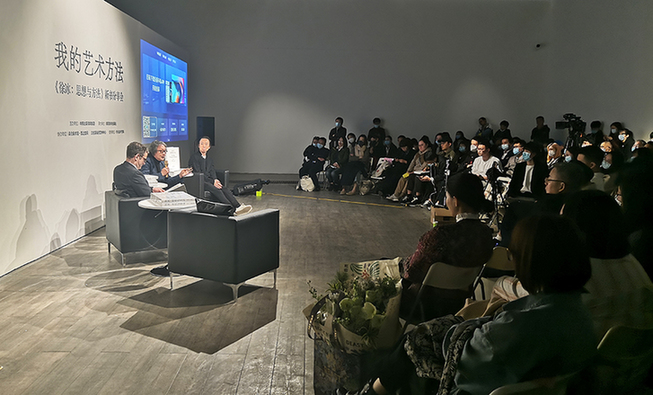 4月1日,“我的藝術方法——《徐冰:思想與方法》新書分享會”在北京798藝術區(qū)舉行。作為湖南美術出版社在北京圖書訂貨會的重要活動之一,主辦方特邀本書作者徐冰、UCCA尤倫斯當代藝術中心館長田霏宇、著名設計師孫華共同出席活動,暢聊徐冰的新書和藝術,探討“徐冰:思想與方法”在呈現(xiàn)與觀看中的多重經(jīng)驗。