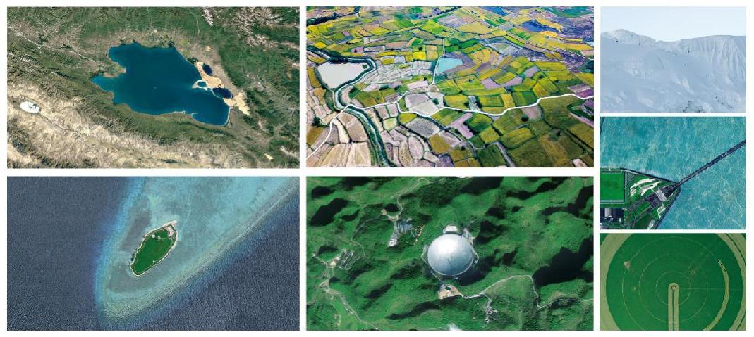 这本书的令人震撼,是因为它的高。60万米的高空,不是登东山而小鲁登泰山而小天下,而是综合调度了高景一号、高分一号、高分二号、高分六号、资源三号等10余颗平均轨道高度约60万米的对地观测卫星进行内容采编,是从60万米的高空来俯瞰东方大陆的沧海桑田宏阔变迁。巨大的视觉冲击,强烈的今昔对比,包举宇内席卷八荒的气势,精骛八极心游万仞的驾临,从大兴安岭到东方明珠,从东海之滨到青藏高原、天山南北,山川苍莽,江河奔流,平畴万里,纵横八荒,大幅宏阔的图片,清晰逼真的线条,色彩斑斓的色彩,让人有翱翔神州大地凌空于飞一览众山小的视觉冲击与审美享受。书中还有200余幅专题地图,十里长安大街的尽收眼底,珠江三角洲的春潮涌动,大上海浦江两岸的万家灯火,人工天河红旗渠的撼人心魄,凡此等等,精准权威,纤毫不差,令人讶异。