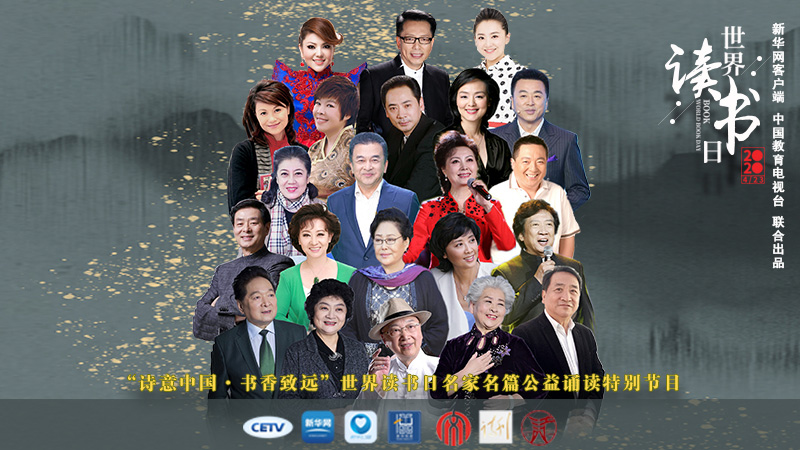 “最是書香能致遠”,在2020年世界讀書日來臨之際,新華網(wǎng)客戶端和中國教育電視臺聯(lián)合發(fā)起了“詩意中國·書香致遠世界讀書日名家名篇公益誦讀活動”。喬榛、濮存昕、斯琴高娃、董浩、于丹等著名藝術(shù)家、主持人、學(xué)者以及來自全國各地朗讀演講的專業(yè)老師紛紛獻聲誦讀、分享名篇。希望美好的聲音能取悅您的耳朵,慰藉您的心靈……