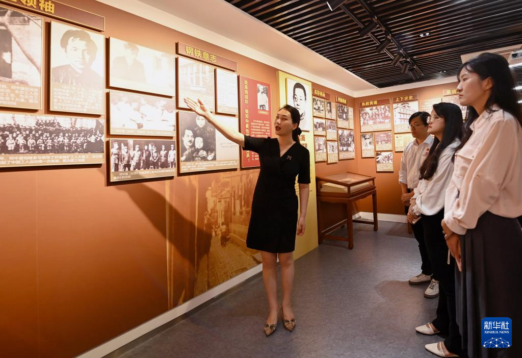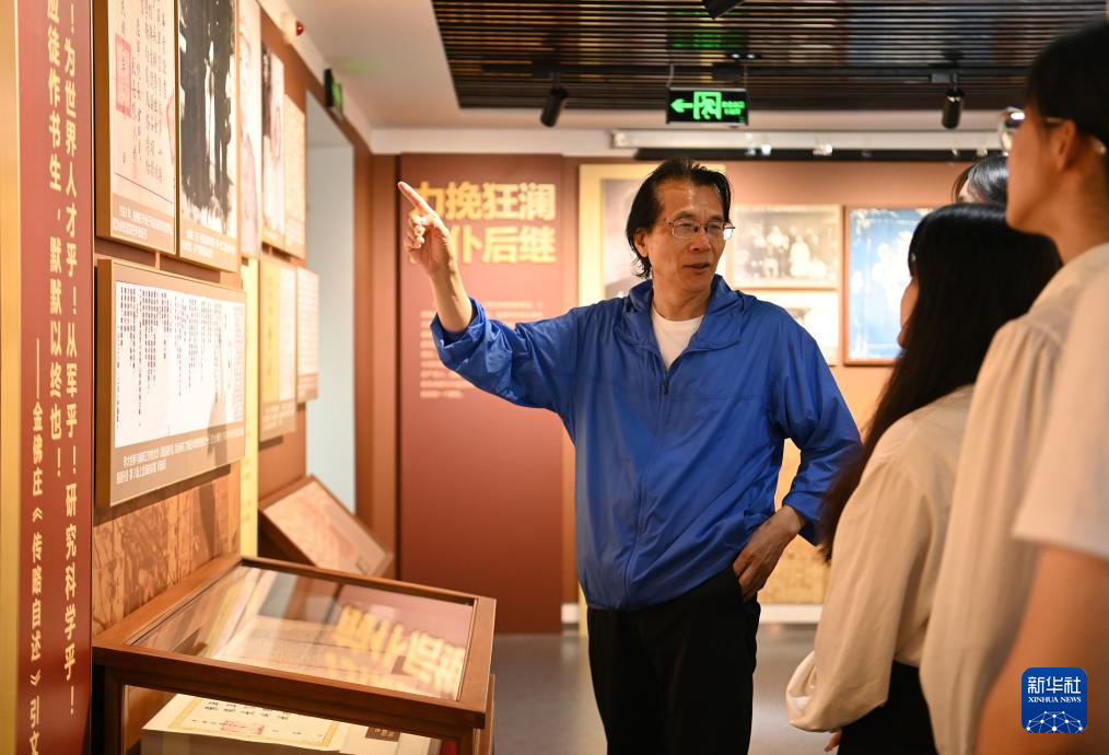 7月12日,作家何建明(左一)在北大红楼为观众讲解从北京大学走出的雨花英烈的事迹。