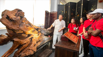 7月18日,参观者在观看艺术作品《幸福的全家福》。