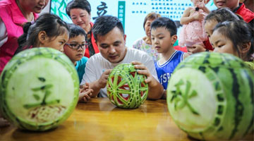 香港陶艺家王俊贤在现场展示如何制作香插(7月30日摄)。新华社记者 王申 摄