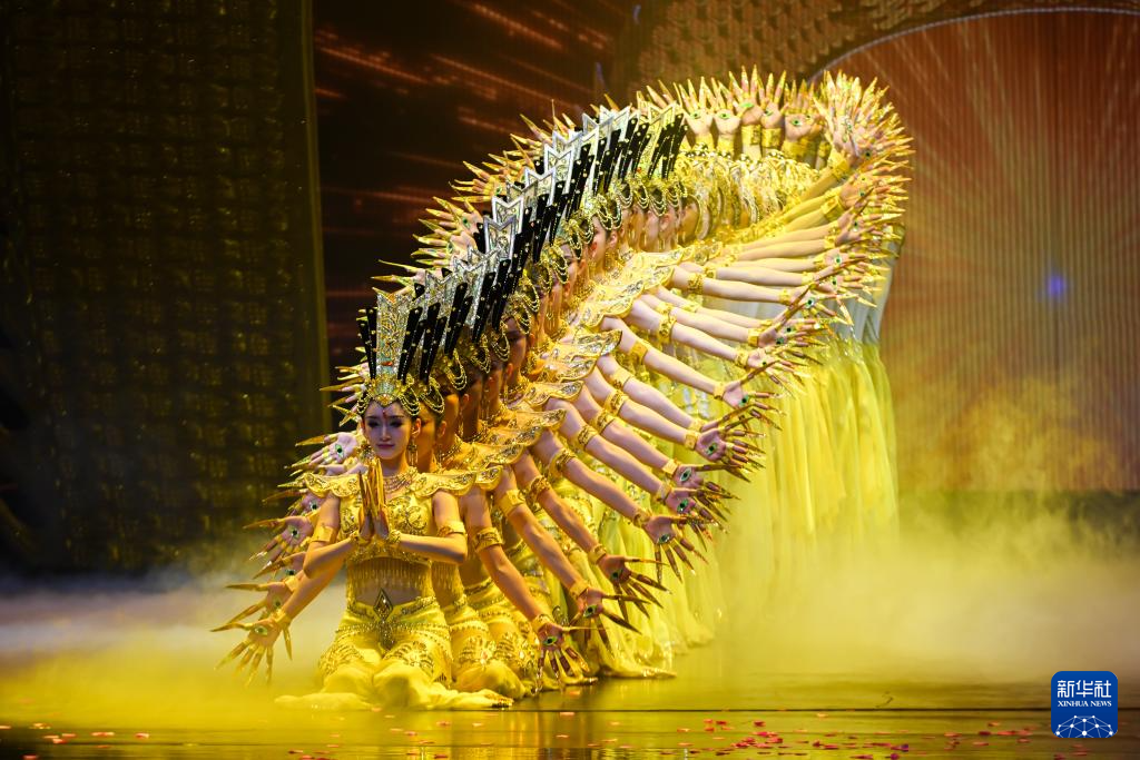 今年以来,脱胎于敦煌文化的洞窟沉浸式体验剧《乐动敦煌》、室内情景体验剧《又见敦煌》、沙漠实景演出《敦煌盛典》和中国残疾人艺术团情景音画剧《千手千眼》四场剧目在丝路名城甘肃敦煌同步上演,剧目将敦煌历史底蕴、服饰文化、乐舞文化等生动融合,为游客呈现出精彩绝伦的敦煌文化视觉盛宴,深受中外游客喜爱。截至8月10日,四大剧目今年已累计演出1175场次,观看游客突破66万人次。其中,《千手千眼》以中国残疾人艺术团音乐舞蹈诗《我的梦》为蓝本,融合莫高窟第3窟等敦煌壁画元素创编而成,50名听障或视障演员通过音乐、舞蹈和多媒体等形式创新讲述了“妙善救父”的民间故事,是特殊艺术与敦煌文化的融合。