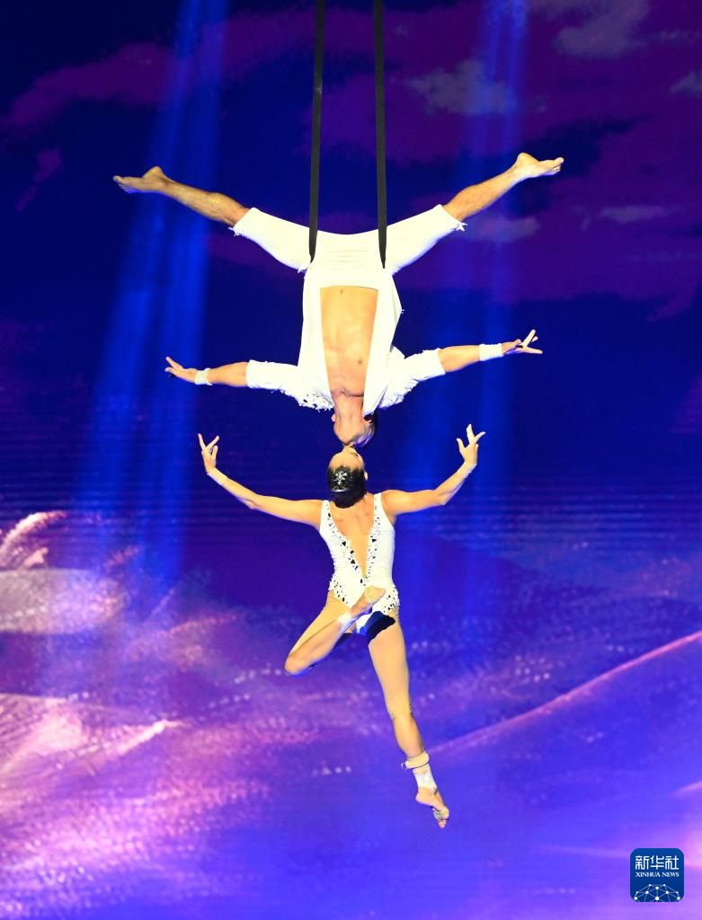 10月20日,演员在第十九届中国吴桥国际杂技艺术节开幕式上表演。