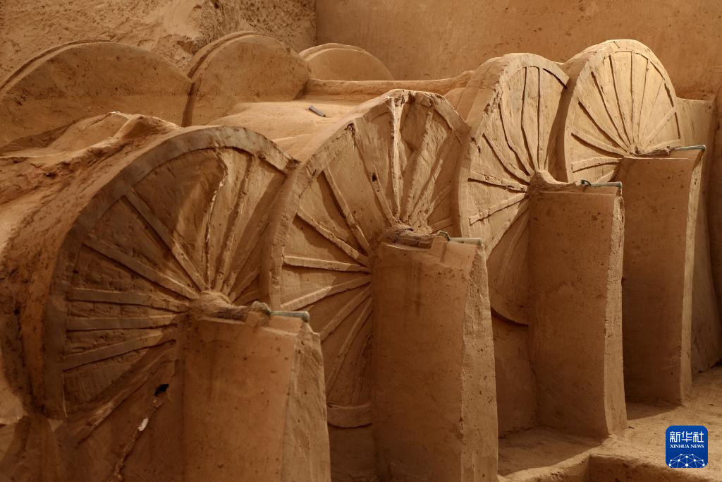 陕西清涧寨沟遗址瓦窑沟墓地出土的葬车(资料照片)。