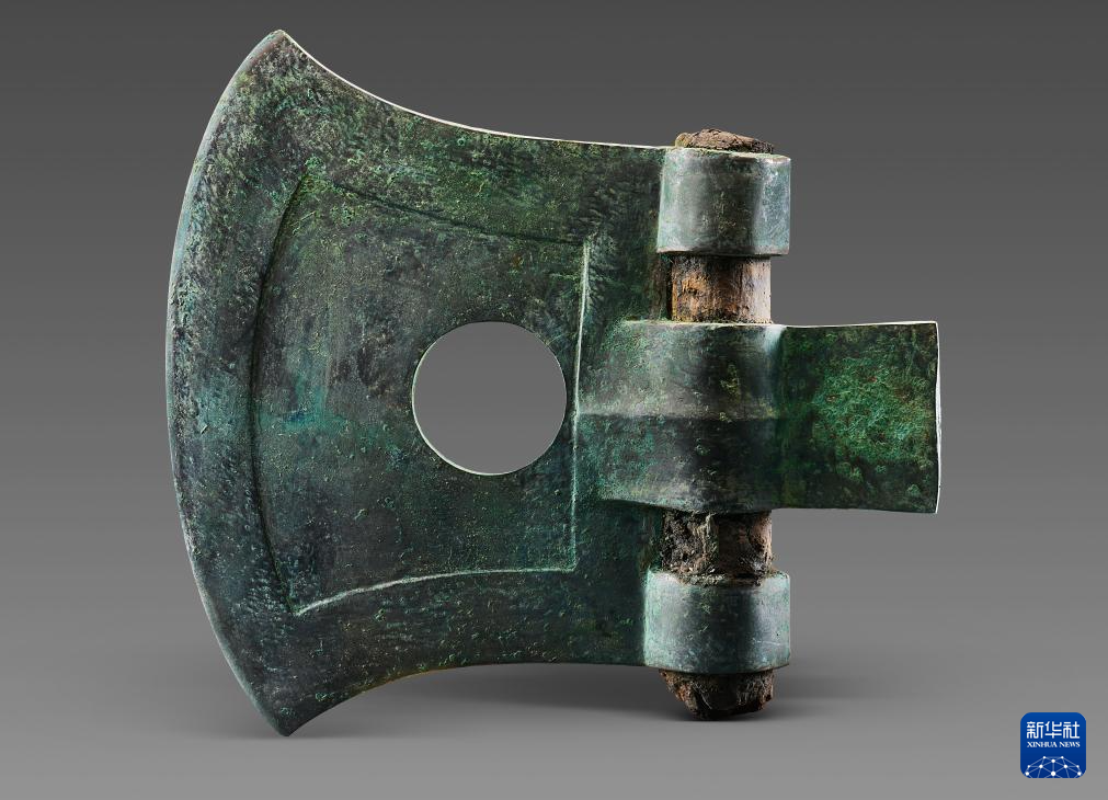 陕西清涧寨沟遗址瓦窑沟墓地出土的铜钺(资料照片)。