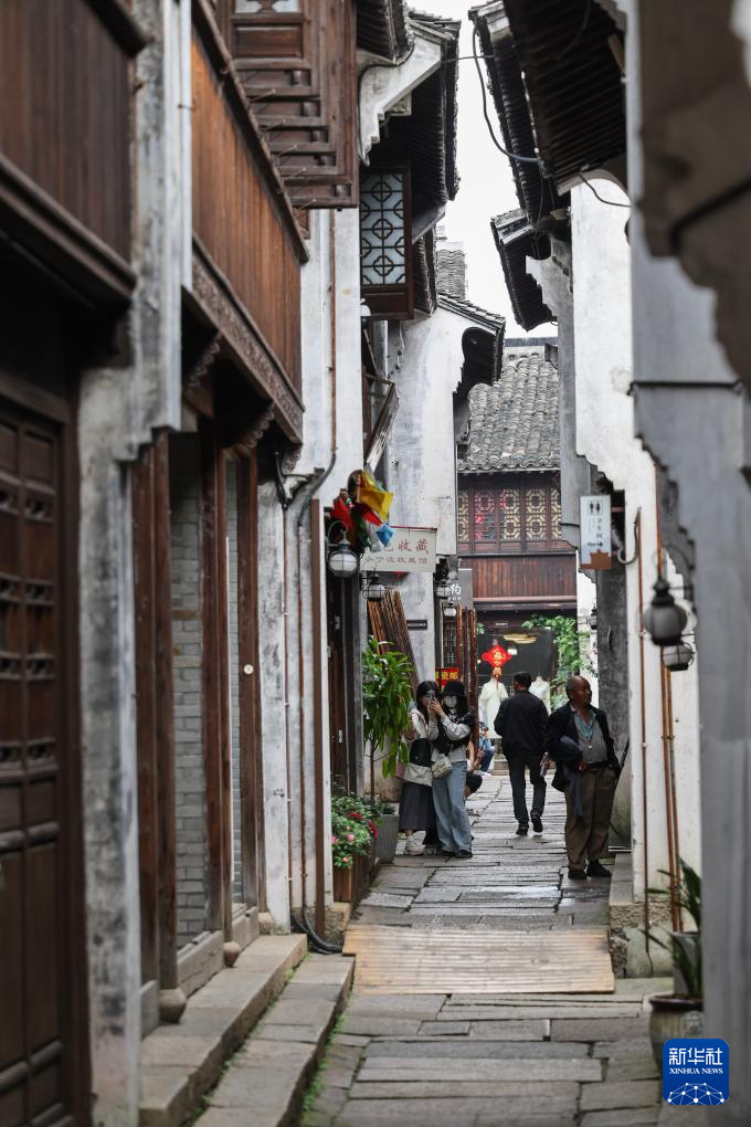 4月26日,游客在嘉兴市月河历史街区观光游玩。
