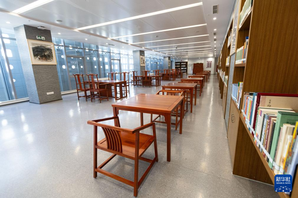 这是5月5日在塞尔维亚贝尔格莱德拍摄的中国文化中心图书馆。