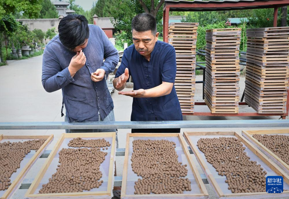 张书芳在查看制香原材料柏子仁的品质(7月3日摄)。