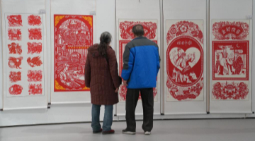 1月12日,在埃塞俄比亚首都亚的斯亚贝巴友谊广场,当地市民在“庆祝中埃塞建交55周年暨欢乐春节活动”现场体验中国剪纸文化。