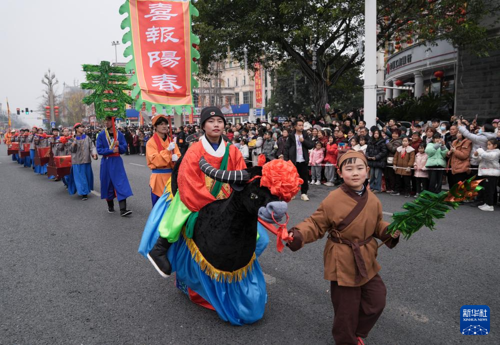 1月22日在绵竹年画节开幕式上拍摄的巡游队伍。