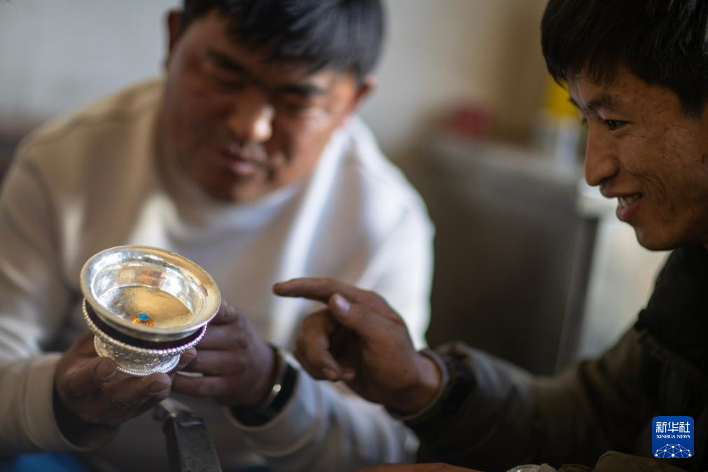 3月6日,扎西吉彩的手工匠人在讨论银器的造型。