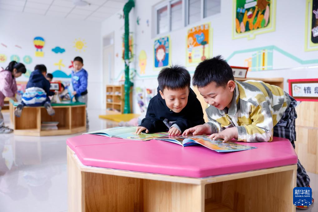 4月2日,河北省唐山市丰南区群立幼儿园小朋友在阅读绘本。