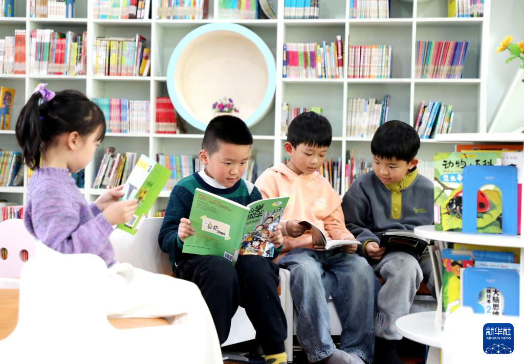 4月2日,学生在江苏省泰州市姜堰区实验小学教育集团城南校区图书馆内阅读。