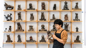 11月19日,川剧变脸演员蒋莹与观演的学生们互动。