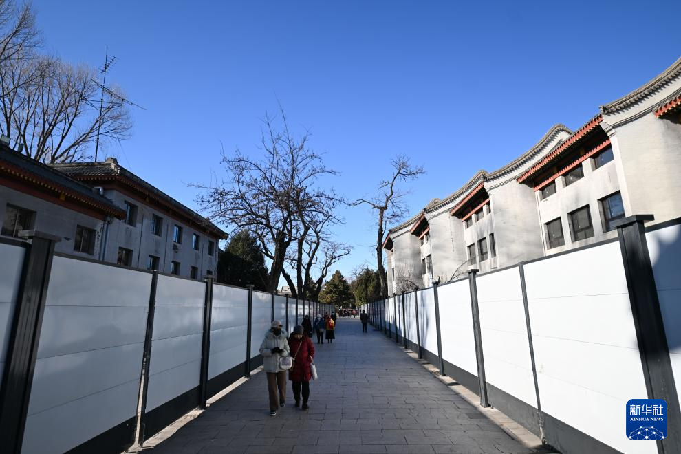 这是12月30日拍摄的连接先农坛内外坛的一段道路,道路两旁是育才学校原校址建筑。