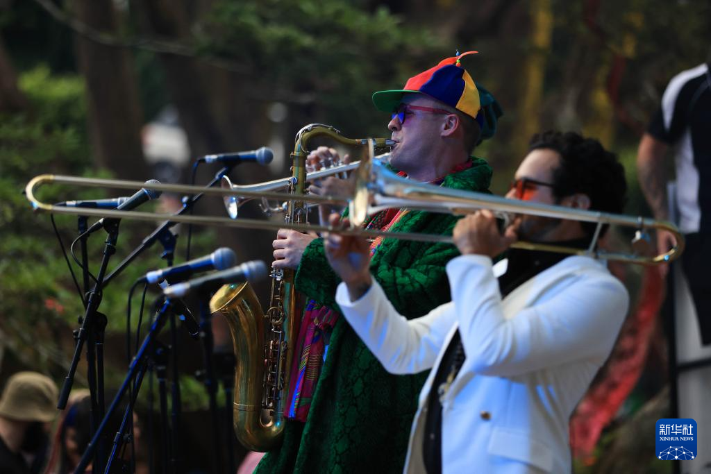 1月6日,在新西兰首都惠灵顿,人们在2026花园魔幻音乐节现场游玩。