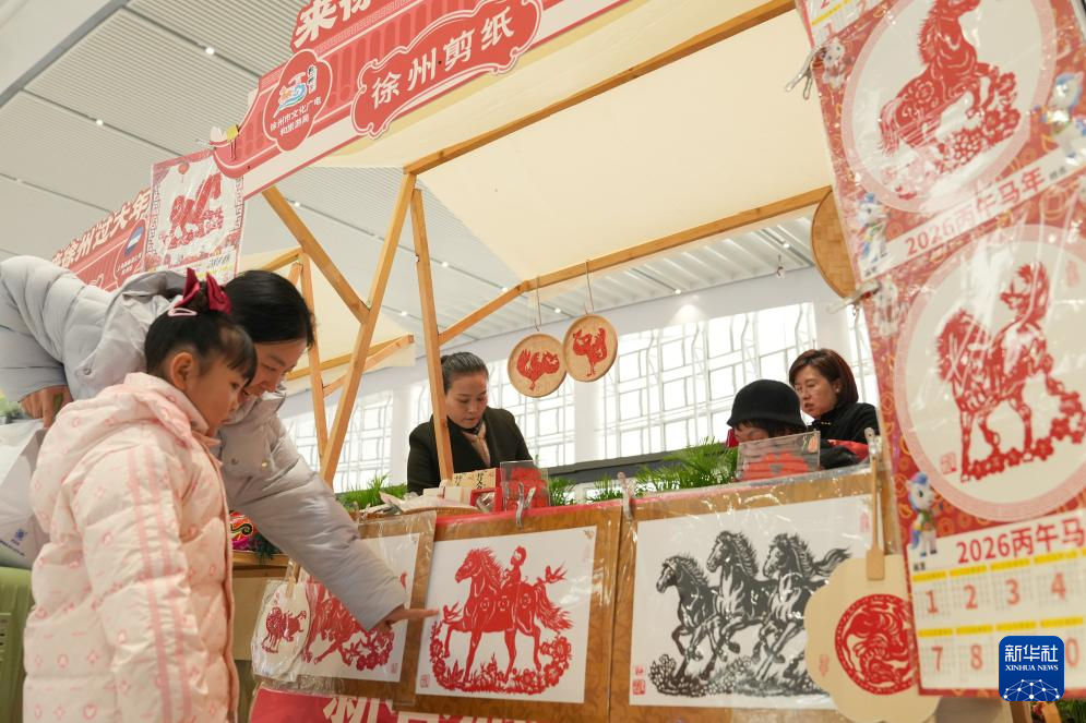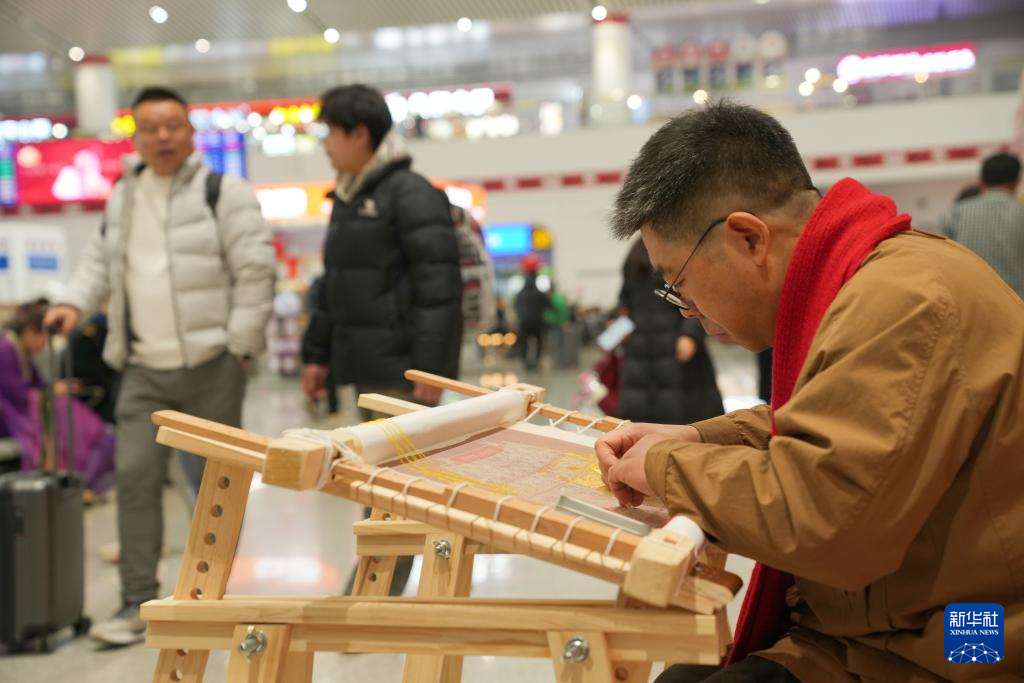 2月10日,在江苏徐州东站,一场“来徐州过大年”活动吸引了不少候车旅客驻足围观。工作人员现场制作、展示香包、剪纸、汉绣等20余种民俗艺术品,营造浓厚的节日氛围,让旅客体验到浓浓年味儿。