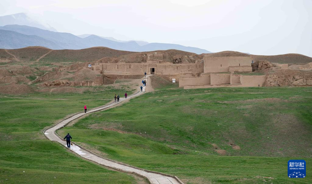 3月18日,游客在土库曼斯坦首都阿什哈巴德市郊的老尼萨城遗址参观。