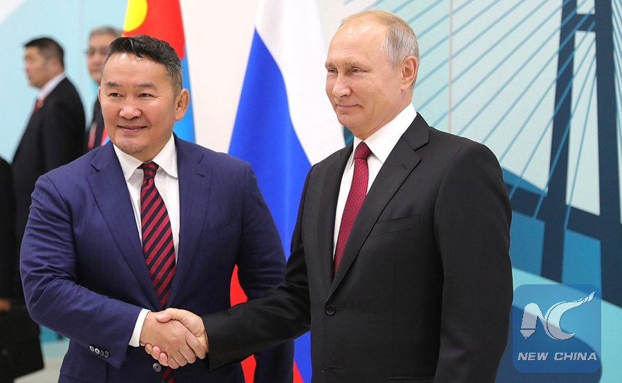 VLADIVOSTOK, Russia, Sept. 12 (Xinhua) -- Russian President Vladimir Putin said Wednesday that he is satisfied with the "progressive development" of relations with Mongolia.