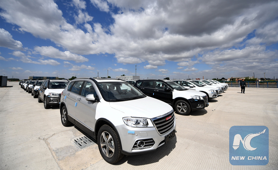 Haval series of China's major SUV maker, Great Wall Motors, wait to be exported to Russia through the Changchun-Manzhouli-Europe International Rail Freight Line at a land port in Changchun, capital of northeast China's Jilin Province, June 9, 2017. (Xinhua/Zhang Nan)