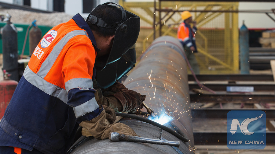 Workers of China Railway Construction Corporation (CRCC) work at a construction site of Moscow subway in Moscow, capital of Russia, on June 3, 2018. (Xinhua/Bai Xueqi)