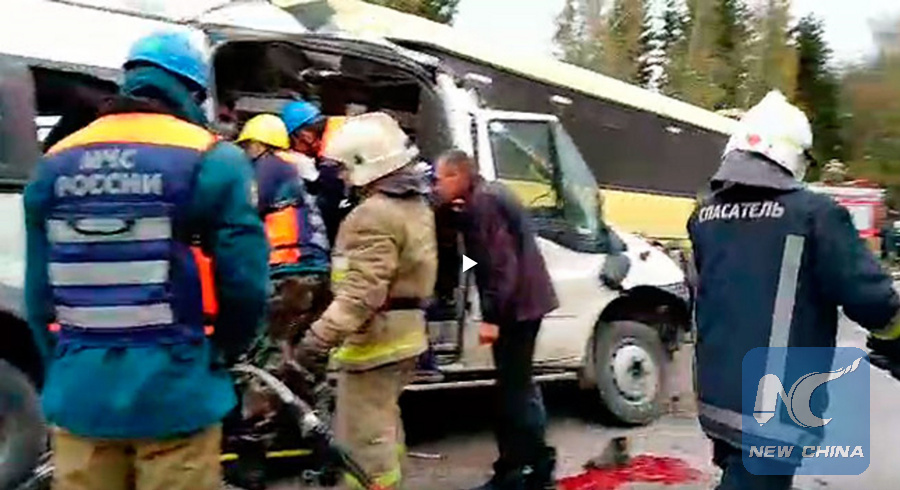 MOSCOW, Oct. 5 (Xinhua) -- At least 13 people were killed Friday after two buses collided on the Tver-Rzhev highway in west Russia's Tver region, the office of the regional governor Igor Rudenya said in a statement.