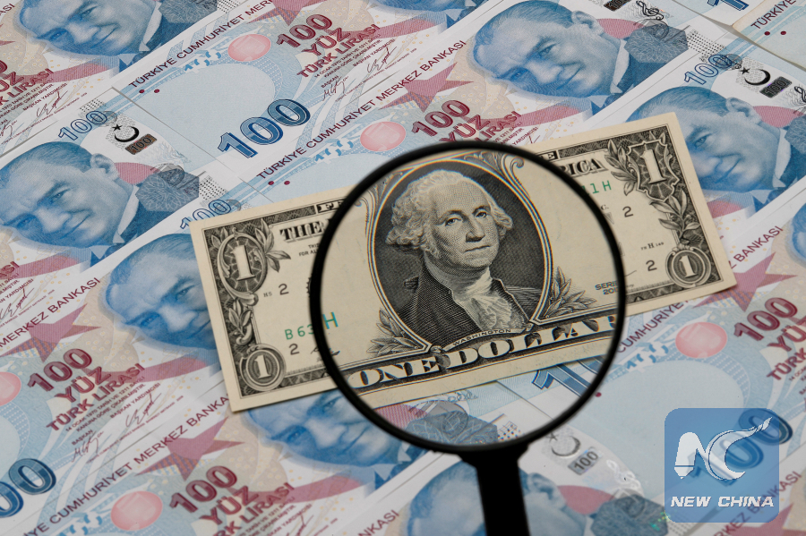 A U.S. dollar banknote is seen through a magnifying lens on top of 100 Turkish lira banknotes in this picture illustration in Istanbul, Turkey, on Aug. 14, 2018. (Reuters photo)