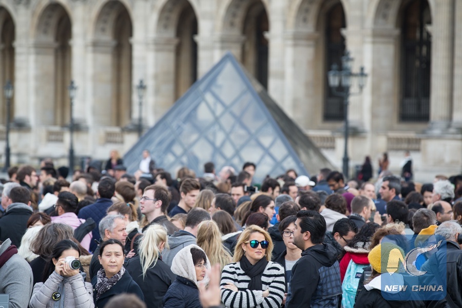 Tourists wait to visit the Louvre Museum as it reopens in Paris, capital of France, on Nov. 16, 2015, following a temporary closure in response to the terrorist attacks on Nov. 13, 2015. (Xinhua/Xu Jinquan)