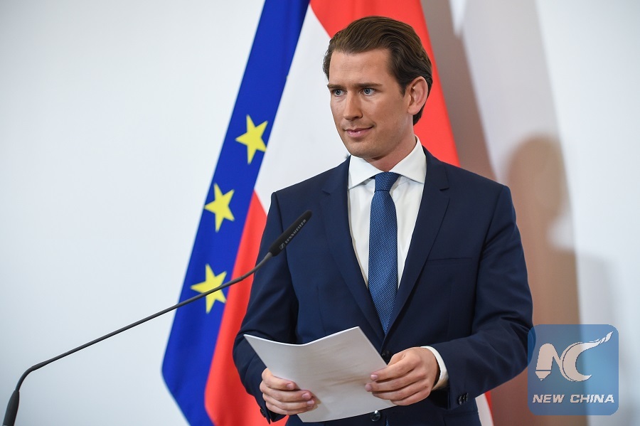 Austrian Chancellor Sebastian Kurz delivers a press statement in Vienna, Austria, on May 18, 2019. (Xinhua/Guo Chen)