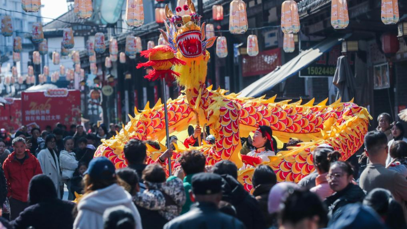 YIXIAN, Feb. 8 (Xinhua) -- Ancient villages in Yixian County of east China's Anhui Province are filled with festive vibes as the Spring Festival approaches. Locals follow folk customs by making steamed rice cakes, fish lanterns, and writing spring couplets, drawing tourists to share the festive joy together.