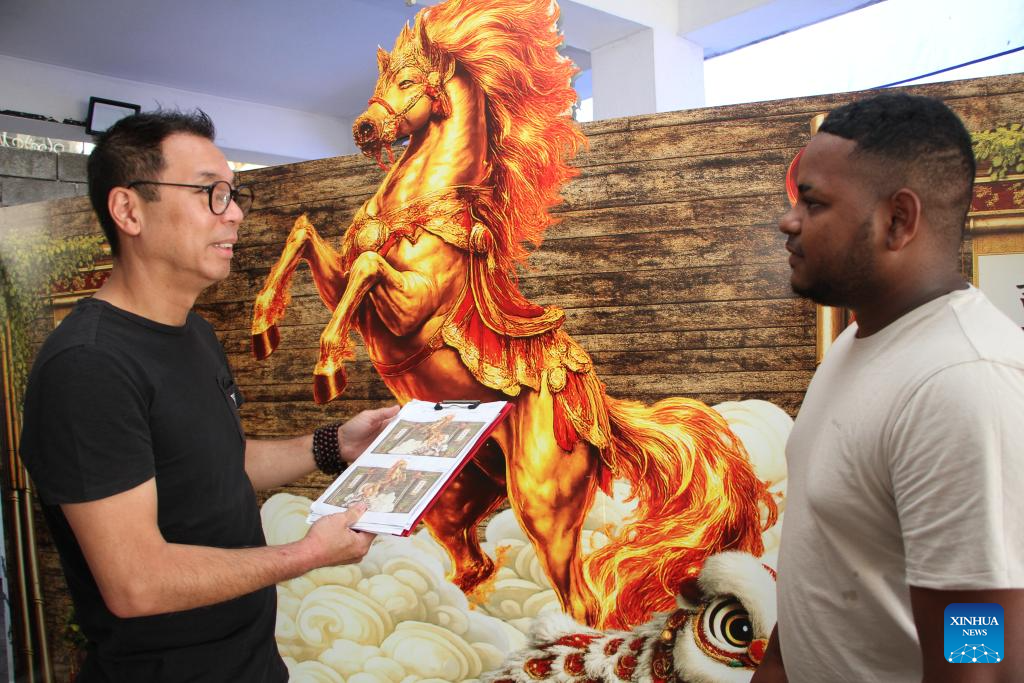 PORT LOUIS, Feb. 20 (Xinhua) -- As a gentle summer sea breeze drifts through the streets of Port Louis, the capital of Mauritius, preparations for the annual Spring Festival float parade are underway inside a workshop.
