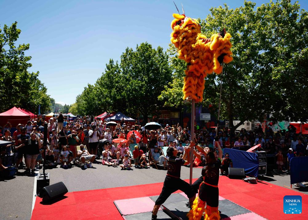 Visitors watch a lion dance performance during an event celebrating the Spring Festival in Canberra, Australia, Feb. 21, 2026. (Photo by Chu Chen/Xinhua)