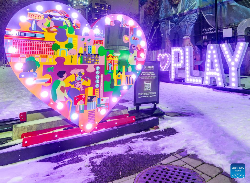 Light installations are on display at the Illuminite 2026 event in Toronto, Canada, Feb. 19, 2026. This event is held here from Feb. 13 to March 8. (Photo by Zou Zheng/Xinhua)