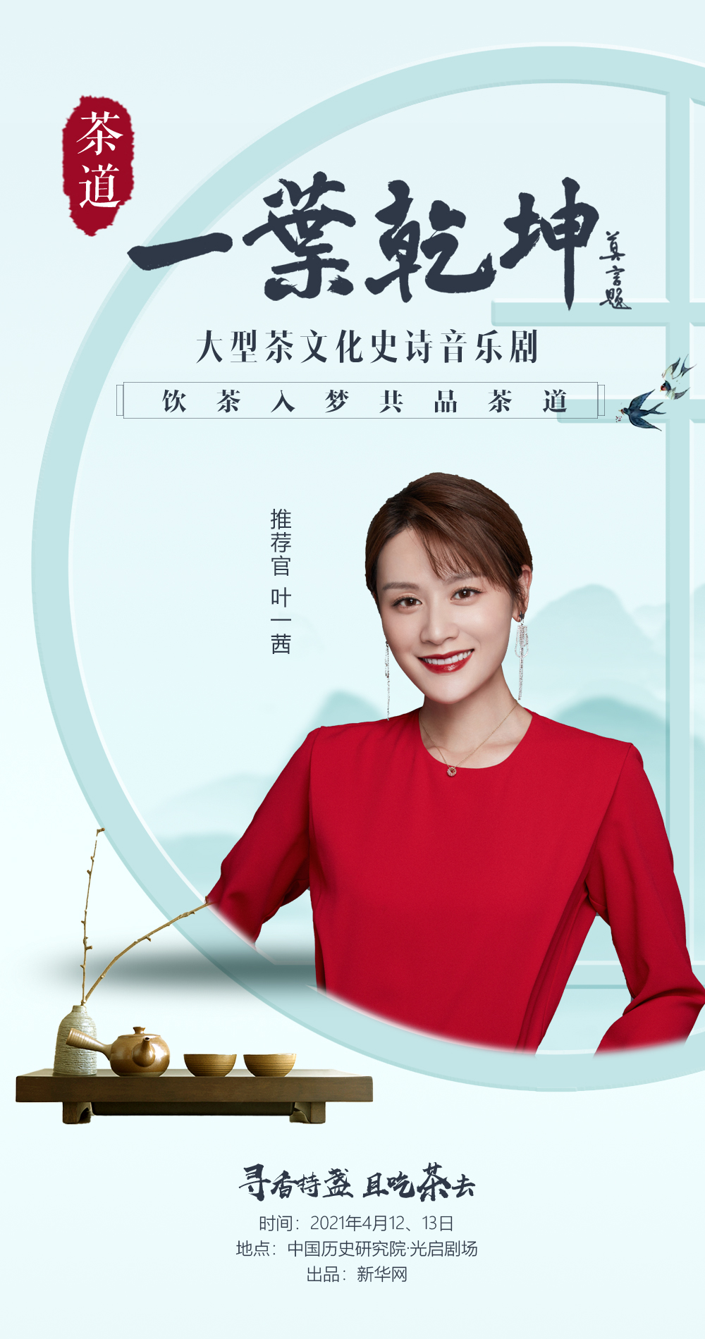 一茶一世界,一葉一乾坤。由新華網(wǎng)獨家出品的大型茶文化史詩音樂劇《茶道:一葉乾坤》將于2021年4月12日-13日在中國歷史研究院光啟劇場隆重上演?!恫璧溃阂蝗~乾坤》推薦官葉一茜向您發(fā)出邀請,邀您共賞葉中乾坤,以茶會友,共品茶道。