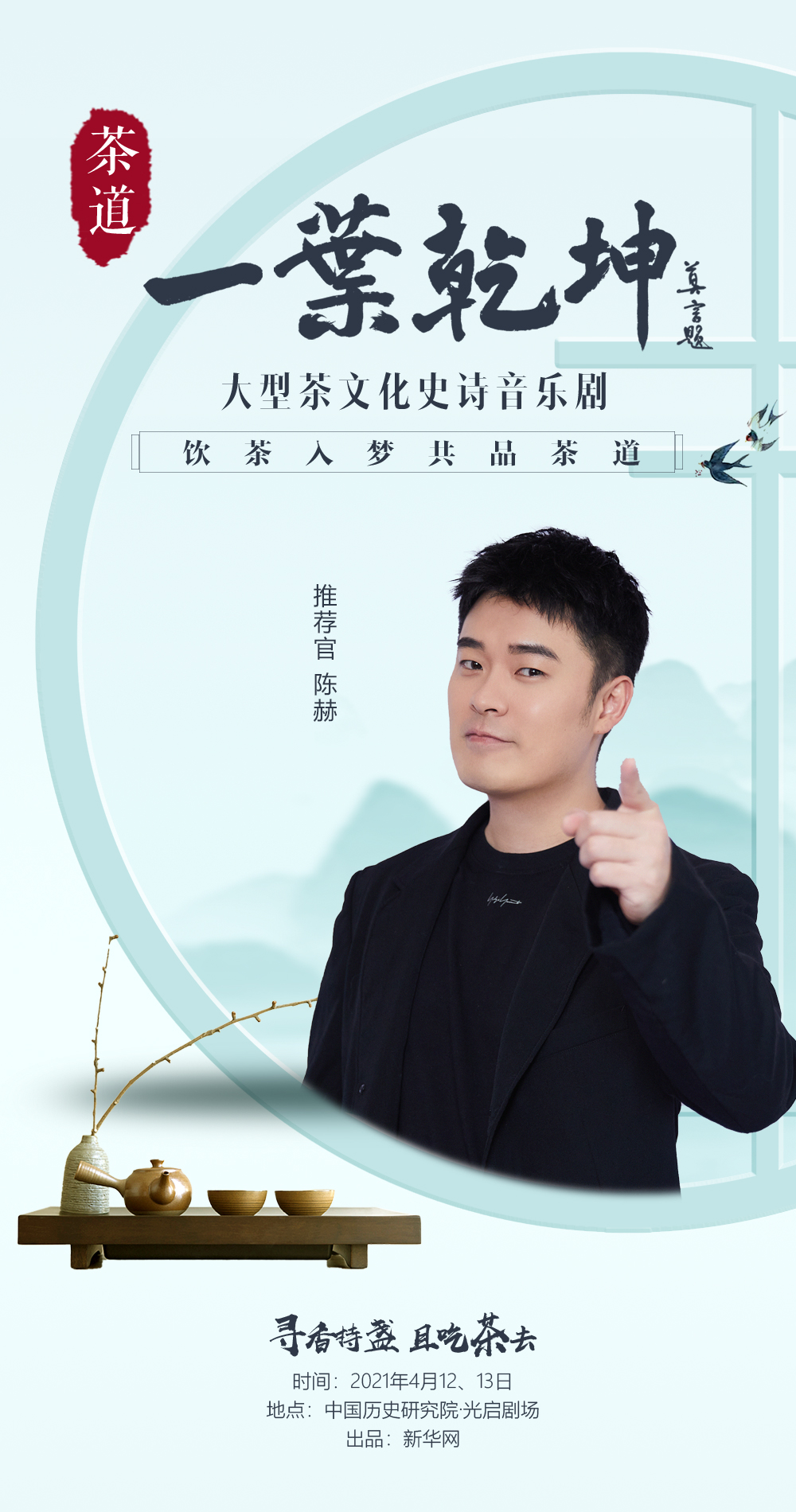 一茶一世界,一葉一乾坤。由新華網(wǎng)出品的大型茶文化史詩(shī)音樂(lè)劇《茶道:一葉乾坤》將于2021年4月12日-13日在中國(guó)歷史研究院光啟劇場(chǎng)隆重上演。《茶道:一葉乾坤》推薦官陳赫向您發(fā)出邀請(qǐng),邀您共賞葉中乾坤,以茶會(huì)友,共品茶道。