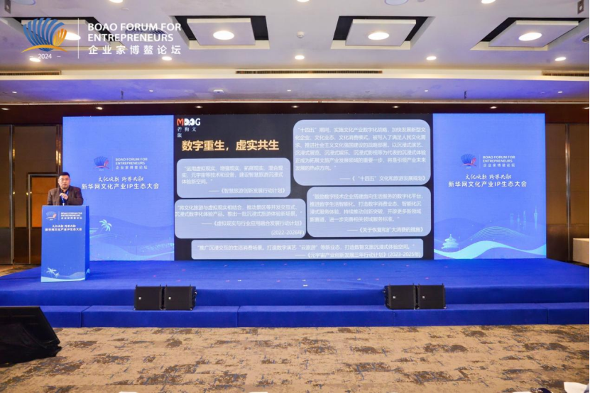 2024企业家博鳌论坛平行论坛新华网文化产业IP生态大会于12月4日在海南博鳌举行。本次大会由新华社品牌工作办公室、新华网、新华社海南分社联合主办,以“文化焕新 跨界共融”为主题,汇聚了地方政府文旅机构、文化行业协会、文化事业单位、智库机构和文化企业等各界代表,共同围绕文化产业发展的新路径与新模式,展开了深入有效的交流与探讨,携手共建发展赋能平台。