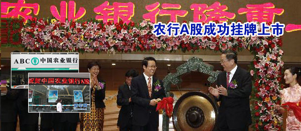 2010年04月14日:中國(guó)農(nóng)業(yè)銀行表示,已確定9家投資銀行協(xié)助農(nóng)行完成A股和H股發(fā)行上市工作。