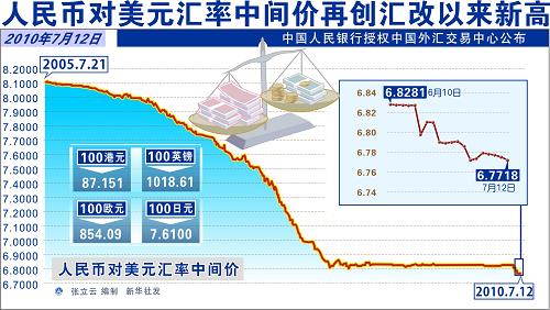人民幣對美元匯率中間價再創(chuàng)匯改以來
