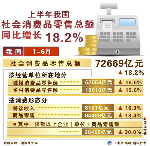 圖表:上半年我國社會消費品零售總額增長18.2%