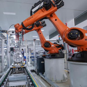 在位于金华市金东区一家公司的生产车间内,流水线上正在加工新能源汽车的智能增程器。新华社记者 徐昱 摄